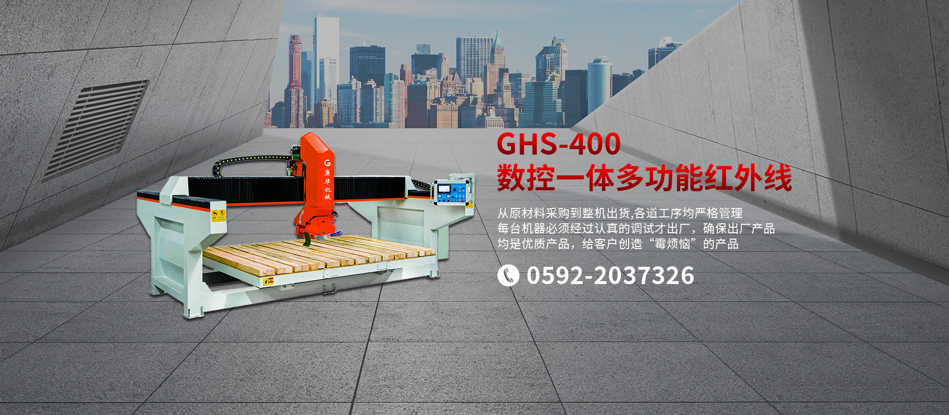 公司生產適用于大理石、花崗巖、砂巖、石灰?guī)r、洞石、玉石等各種石材的機械設備。主要產品有GHHW系列紅外線橋式切邊機、GHQQ系列橋式多片組合鋸石機、各種手動/自動/單頭/多頭板材磨拋機、以及各種異形加工設備。公司長期注重品質管理,以質量為中心,從原材料采購到整機出貨,各道工序均嚴格管理,每臺機器必須經過認真的調試才出廠,確保出廠產品均是優(yōu)質產品,給客戶創造“零煩惱”的產品。